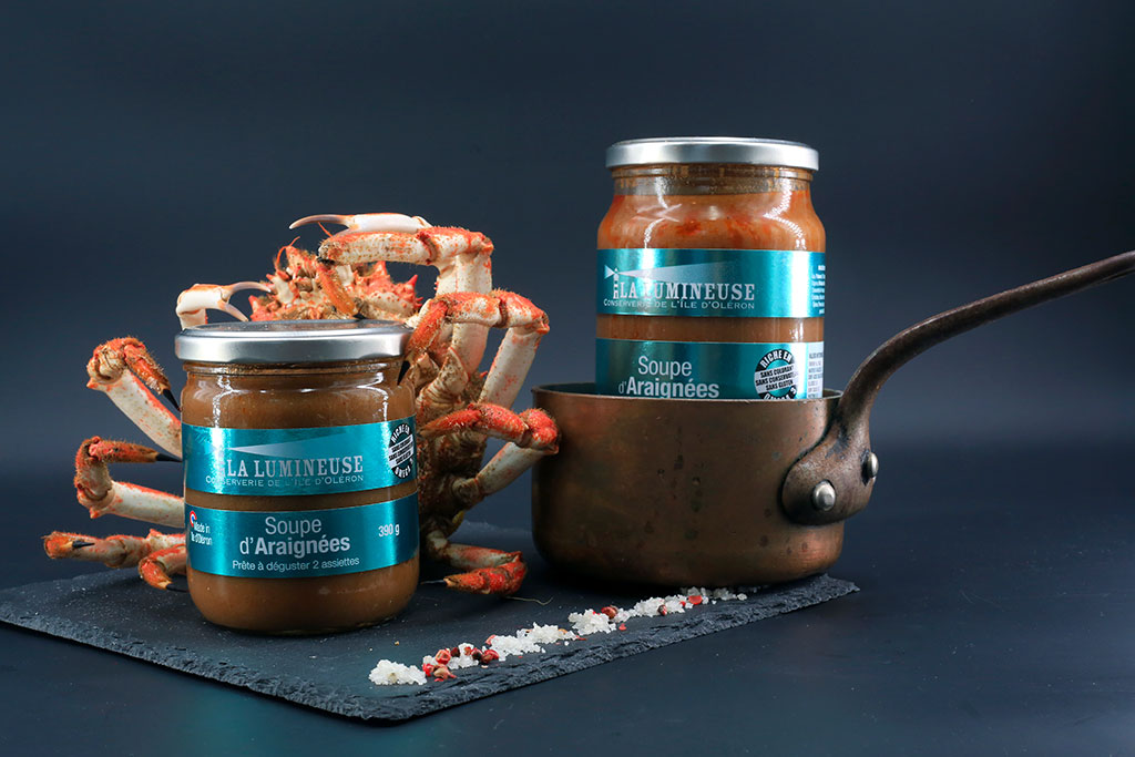 Cuisinée et imaginée dans notre conserverie, La Lumineuse est distribuée dans nos poissonneries, nos 4 boutiques et en épiceries fines, elle propose plus d’une vingtaine de références de rillettes et mousses, et 5 de soupes.